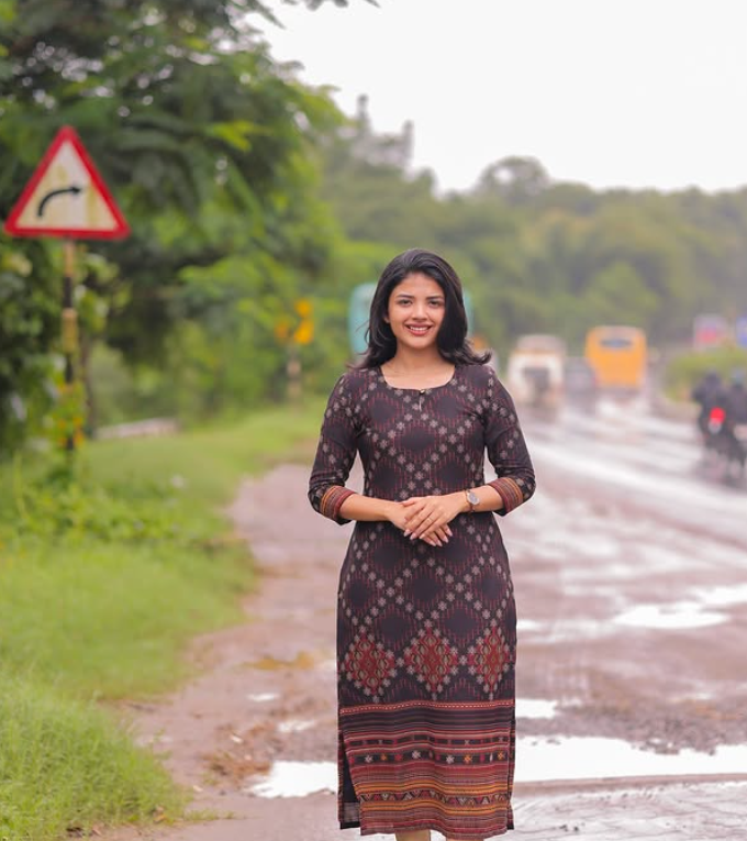 Aru- Garnet Weave Muslin Kurti with 3/4 Sleeves – Casual Chic