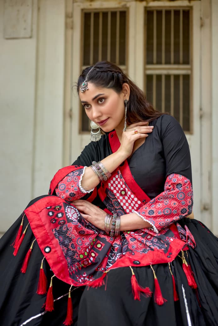 Crowne- Celebrate the vibrant spirit of Navratri with this elegant and graceful white pure cotton chaniya choli set
