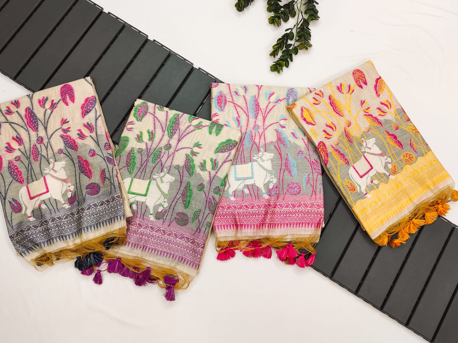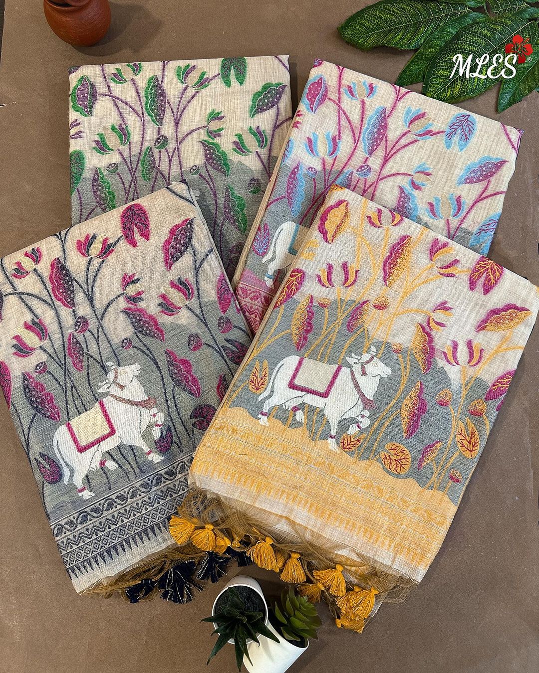 Cow- Pranshi Navy Pichwai Muga Cotton Saree