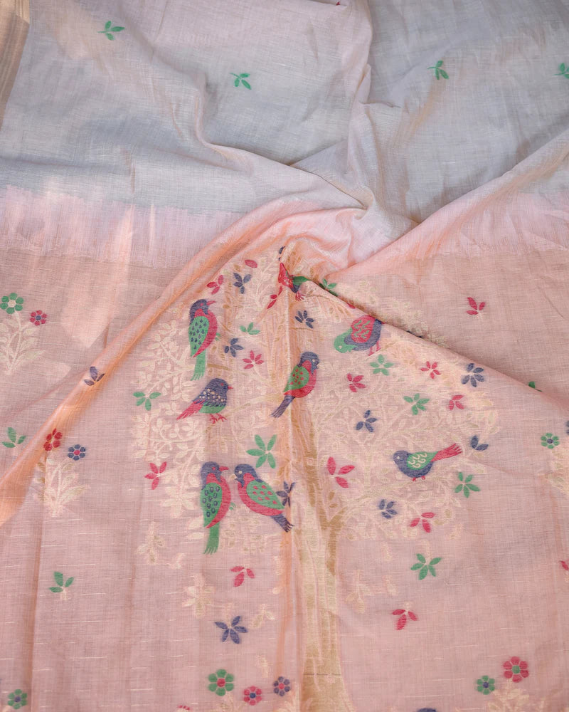 Shagun - Serenity in Silk – Mustard Bird Embroidered Saree